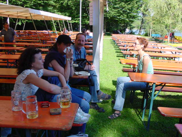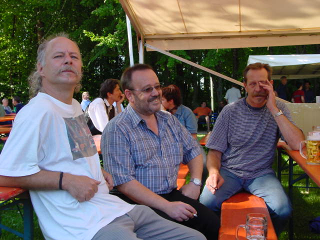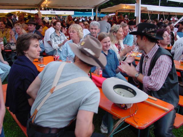 ... und spielt hier irgendwo eine Band? Gegen halb eins gab es noch eine kleine Session mit allen beteiligten Musikern und nach "Will the Circle be unbroken" musste trotz vieler Zugabe-Rufe doch endgültig Schluss sein ! (Die Anwohner wollen schließlich auch mal schlafen ...)
