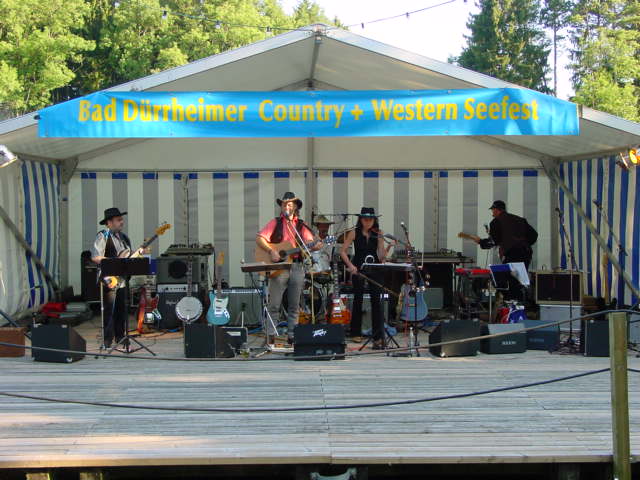 Wieder ein Highlight: Das "Country- und Western-Seefest" am Salinensee! Das tolle Gelände am Seeufer mit der Bühne auf dem Wasser begeistert jedesmal sowohl die teilnehmenden Bands als auch das Publikum. Gut 1000 Besucher waren wieder herbeigeströmt, um die beiden Bands HONKY TONK HOBOES und WESTWÄRTS bei herrlichstem milden Sommerwetter zu erleben. Ein super Abend!
