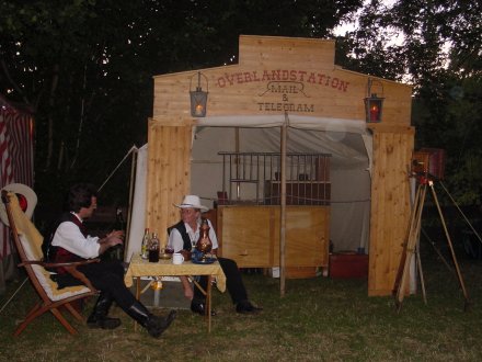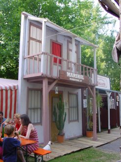 Am Rand des Geländes das Trapper- und Indianderlager, ...