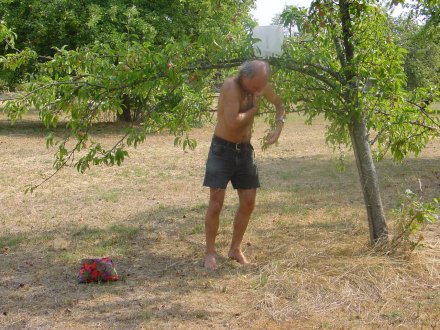 Rainers Baumdusche aus dem Camping-Kanister ("Dusch mol, du schtinksch!")