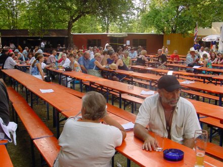 Inzwischen war es auch schattiger geworden (siehe Bild oben), brütend heiß war es aber immer noch ... Gegen Abend füllte sich das Gelände dann langsam aber sicher ...