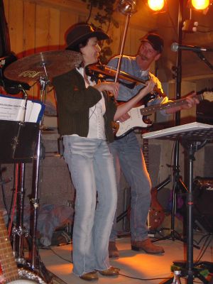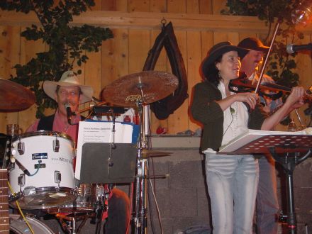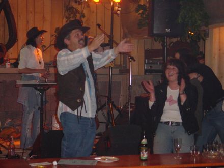 Und dann, es ist so gegen eins, wollen wir eigentlich bald den "Feierabend" ankündigen. Da übernimmt ein, wie er sich selber ausdrückte, "kleiner Mann von nur einsvierzig" das Kommando und macht mächtig Stimmung unter den noch verbliebenen Gästen. Die (und wir) lassen sich nicht lange bitten und machen kräftig mit! Toll! Und dann wird es doch wieder zwei, bis endgültig Schluss ist!