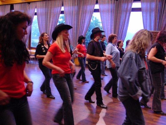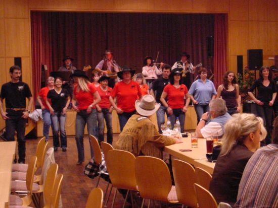 Sa, 02.06.07 "Gemeinsame Probe" Soldatenheim Immendingen Für WESTWÄRTS wird's langsam ernst: Nachdem wir seit Januar mit unserem neuen Gitarristen geprobt haben, steht das Programm wieder. Vor dem ersten "richtigen" Auftritt, demnächst auf dem Michelfeld, machten wir eine "gemeinsame Probe" unter "Fast-Ernstfall-Bedingungen" mit unseren Freunden, den Line-Dancern von den "Crazy Wild Boots". Wir trafen uns im Soldatenheim Immendingen, wo die Line Dancer immer ihren monatlichen größeren Tanzabend abhalten. Diesmal kommt die Musik live statt von CDs !