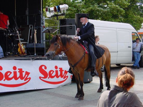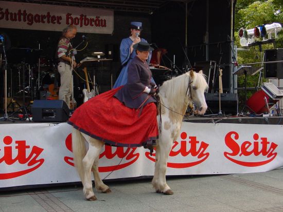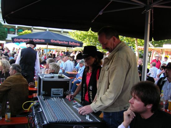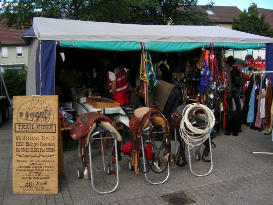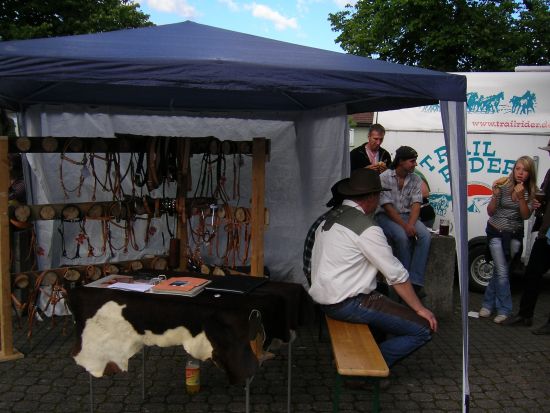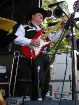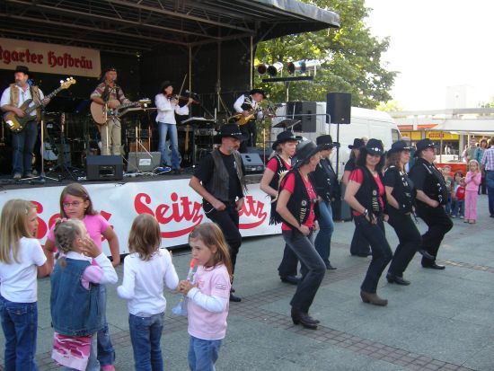 Sa, 07.07.07 Westernfest Spaichingen Auch diese Woche war das Wetter nicht besonders, und pünktlich zum Samstag wurde es schön. Was will man mehr? Zum dritten Mal fand das Westernfest auf dem Rathausplatz statt und erstmalig waren auch wir dabei. Beeindruckend viele Leute hatten sich schon am frühen Nachmittag eingefunden, und am Abend war es dann rappelvoll. Kein Wunder bei den milden Temperaturen, die wir eigentlich schon gar nicht mehr gewöhnt sind! Bereits ab 15 Uhr begann das Programm mit dem Country-Barden Thomas Stahl, mit Rock'n Roll-Tanz oder ...