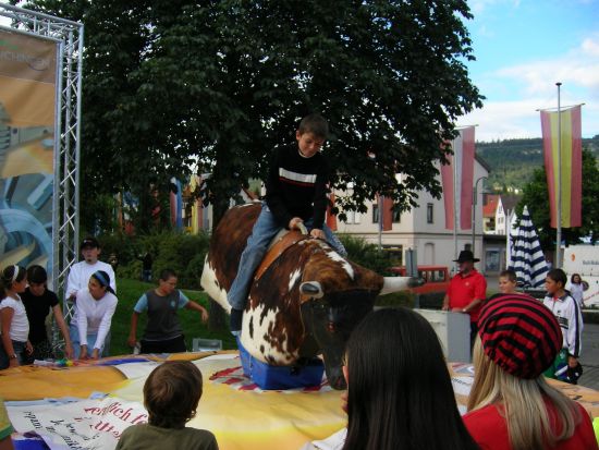 Überall auf dem Platz gibt's Western-Angebote, wie Bullenreiten, ...