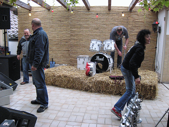Ottmar hat sogar ein Strohpodest für sein Schlagzeug gekriegt! (Na ja, es waren stabile Holzpaletten drunter, nur Strohballen wären nun doch zu wackelig für den guten Otti ....)