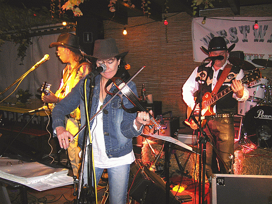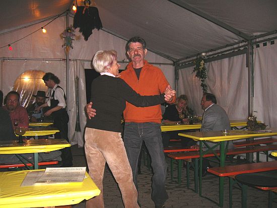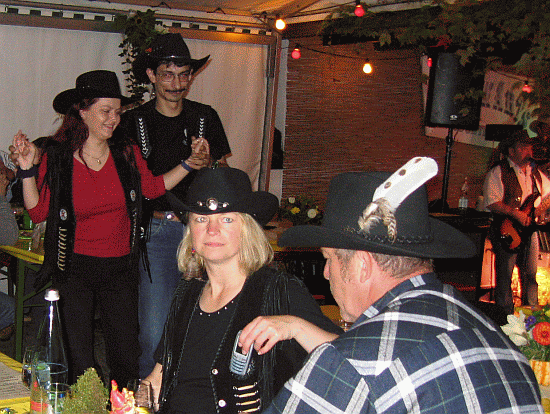 Zwischendurch kann auch Edith mal eine Linedäncchen wagen. Das kleine Zelt wurde leider nicht so voll, wie der Veranstalter und wir uns das gewünscht hätten. Gegen Mitternacht gingen viele, wohl auf Grund der doch herbstlichen Temperaturen.