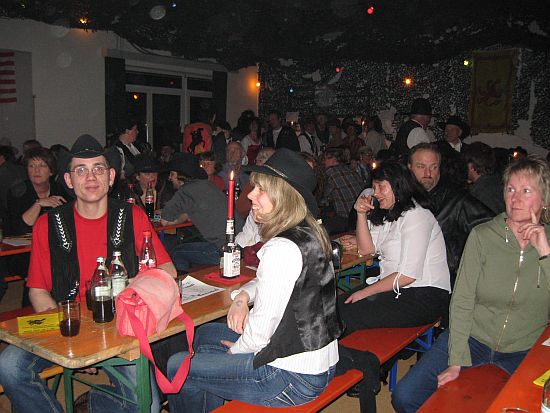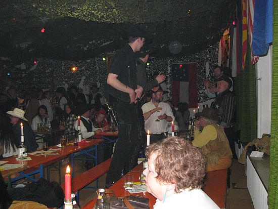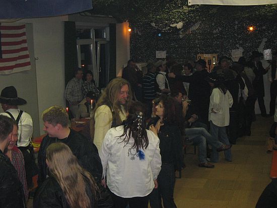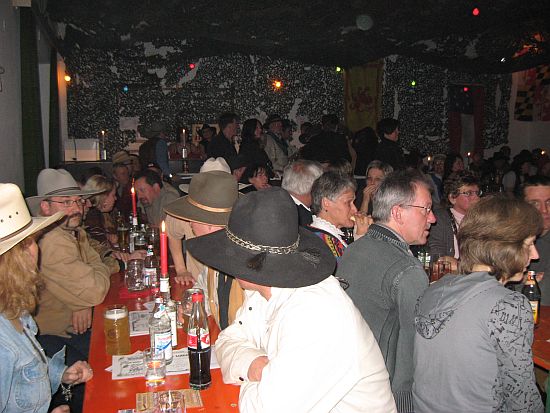 Der gemütliche Gemeindesaal ist als "Country Saloon" hergerichtet und füllt sich schnell ...