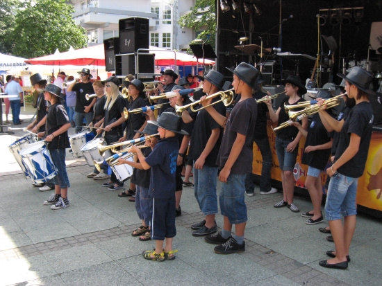 Schlagzeuger Holzi darf auch mal ganz vorne sitzen.