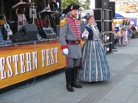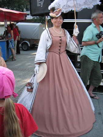 ... ihrer historischen Modenschau an. (Diese beiden "Mannequins" waren als Gäste im Publikum und erklärten sich spontan bereit, mitzumachen.)