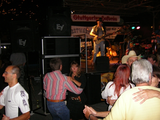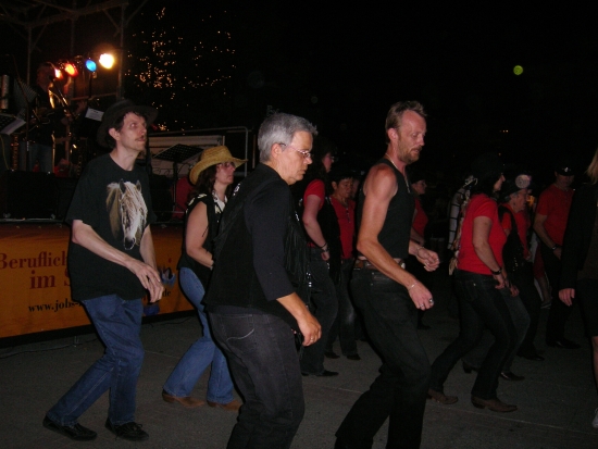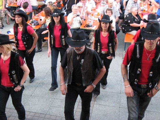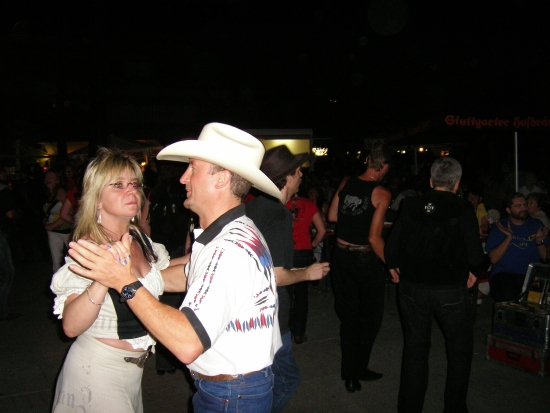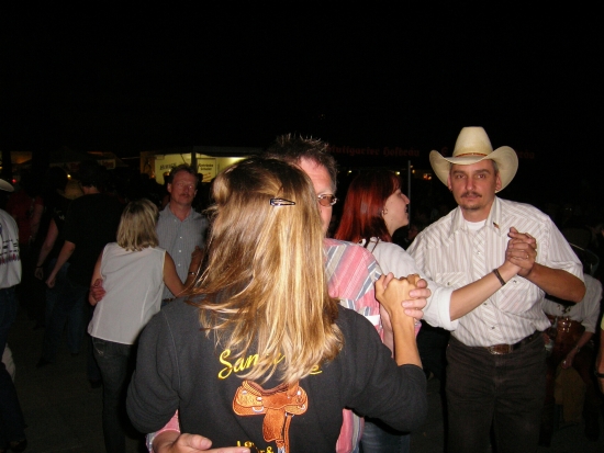 Es sind auch viele Tänzer aus anderen Line Dance Gruppen da. Diese beiden gehören zu den "Thunder Boots".