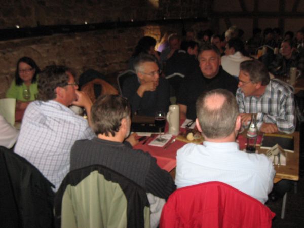 Do, 13.05.10 Hechingen/BL: Vatertagsfrühschoppen in der "Domäne" Seit Wochen regnet es (fast) ununterbrochen und die Temperaturen sind für Mai deutlich zu niedrig. Irgendwann könnte es ja mal besser werden, dachten wir, so dass wir am Vatertag auf dem herrlichen Gelände der "Domäne" hoffentlich auch draußen spielen könnten... Aber nein, Petrus war den Vatertäglern, wie schon vorher den Maiwanderern, nicht wohlgesonnen und wir beluden dann am Morgen bei Temperaturen um die 5 Grad im Nieselregen unseren Bus. Dass wir drinnen in der Remise spielen würden, war klar. Aber kommen auch Leute bei dem Mistwetter? Wir spekulieren auf der Fahrt ein wenig: