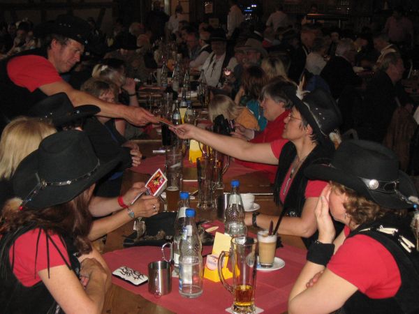 Das sind die "Countryfreunde Zollernalb", die auch viele Plätze für ihre noch erwarteten Kollegen besetzen.